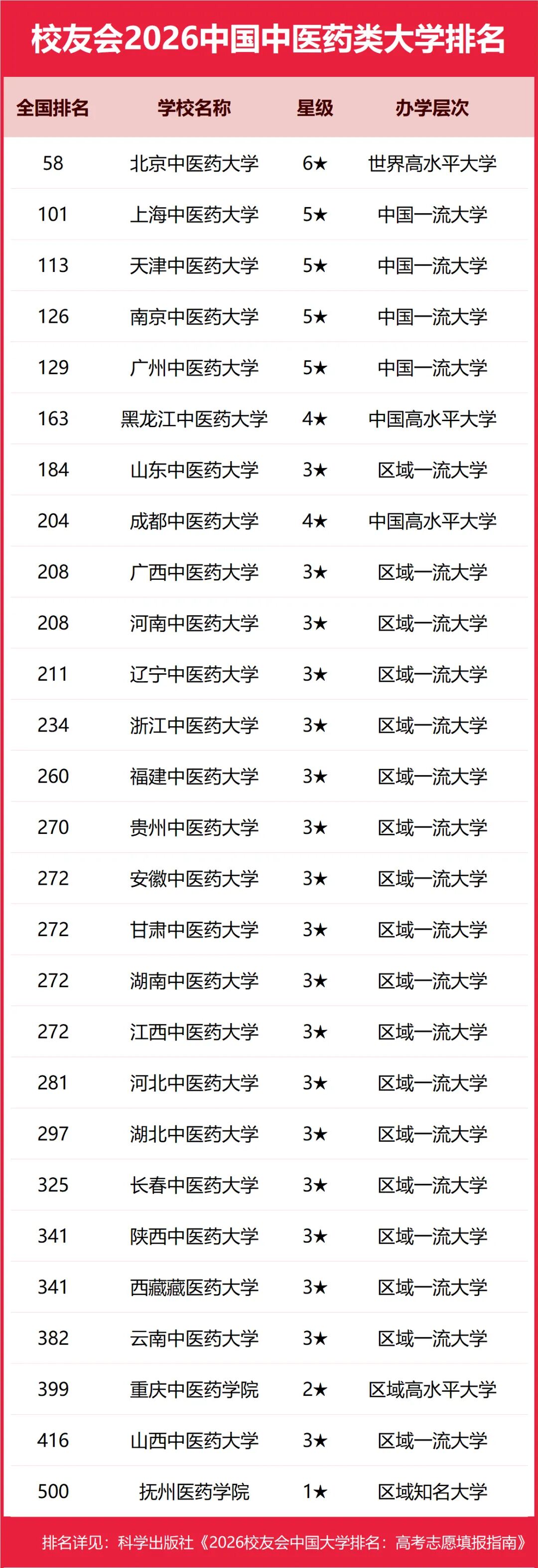 家长们、同学们,2026年的钟声敲响,高考冲刺进入白热化阶段~想在中医药赛道“弯道超车”?今天结合「校友会2026中国中医药类大学排名」,复盘2025招生趋势,手把手教你挑对院校!