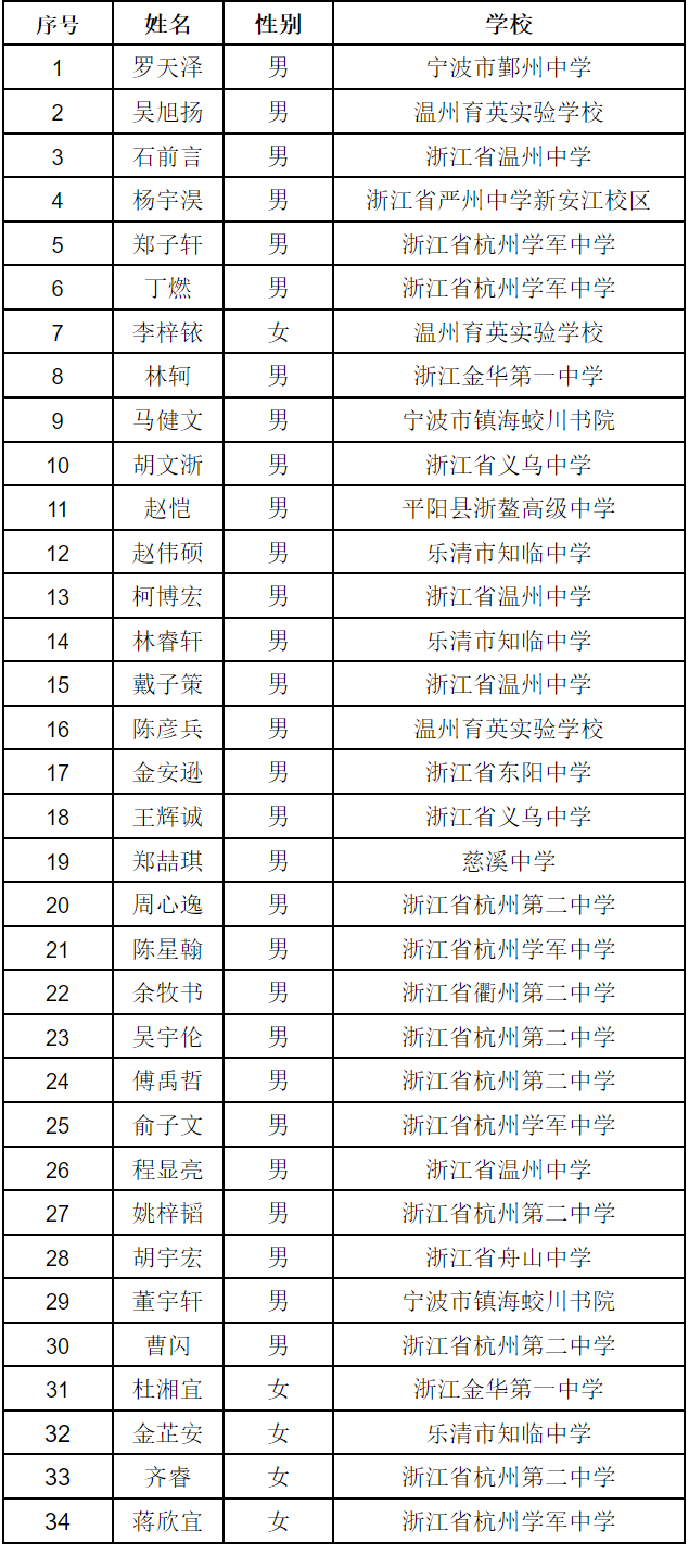 现将第38届中国化学奥林匹克(决赛)浙江省代表队的学生名单予以公示。