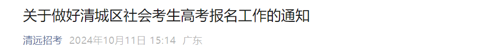根据广东省招生委员会《关于做好广东省2025年普通高校招生统一考试报名工作的通知》(粤招〔2024〕6号)要求,现将2025年我县户籍社会考生普通高考报名有关事项公告如下: