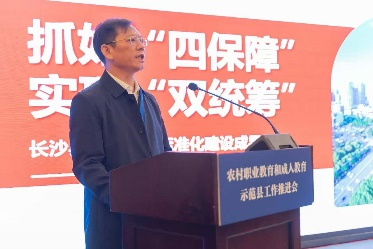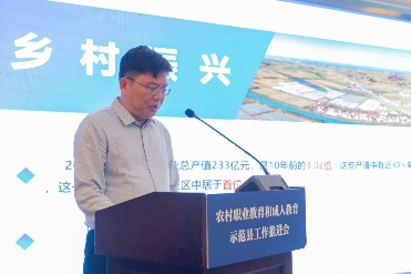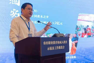 教育部职业教育与成人教育司原副司长谢俐讲话指出,职成教育承担着为乡村振兴培育各类紧缺人才的重任,应从“培养创新型生产经营人才”、“培养复合型乡村治理人才”、“培养终身学习型科技人才”三个方面确立示范县建设工作在乡村人才振兴进程中的价值定位,发挥出多层次、宽口径的技能供给优势。他提出农村职业教育和成人教育示范县建设,要深入分析如何在全面深化改革的浪潮中,推动乡村振兴迈向新高度,共同绘制一幅和美乡村的壮丽画卷。一是要完善农业生产技能培训体系;二是因地制宜,提供差异化的技能培训服务;三是扎实开展“互联网+农业技术培训”。