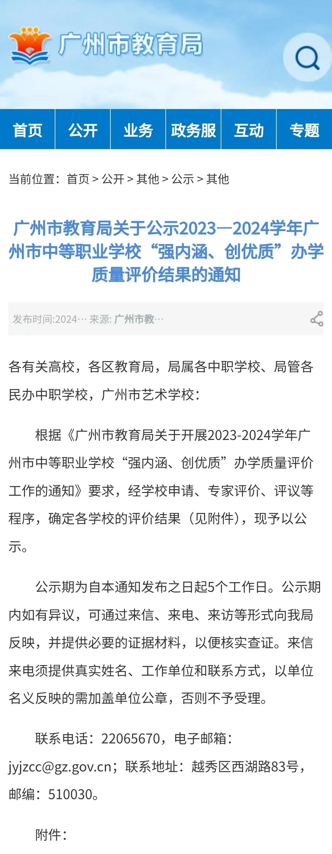 11月1日,广州市教育局在官网公示2023至2024学年广州市中等职业学校“强内涵、创优质”办学质量评价结果。