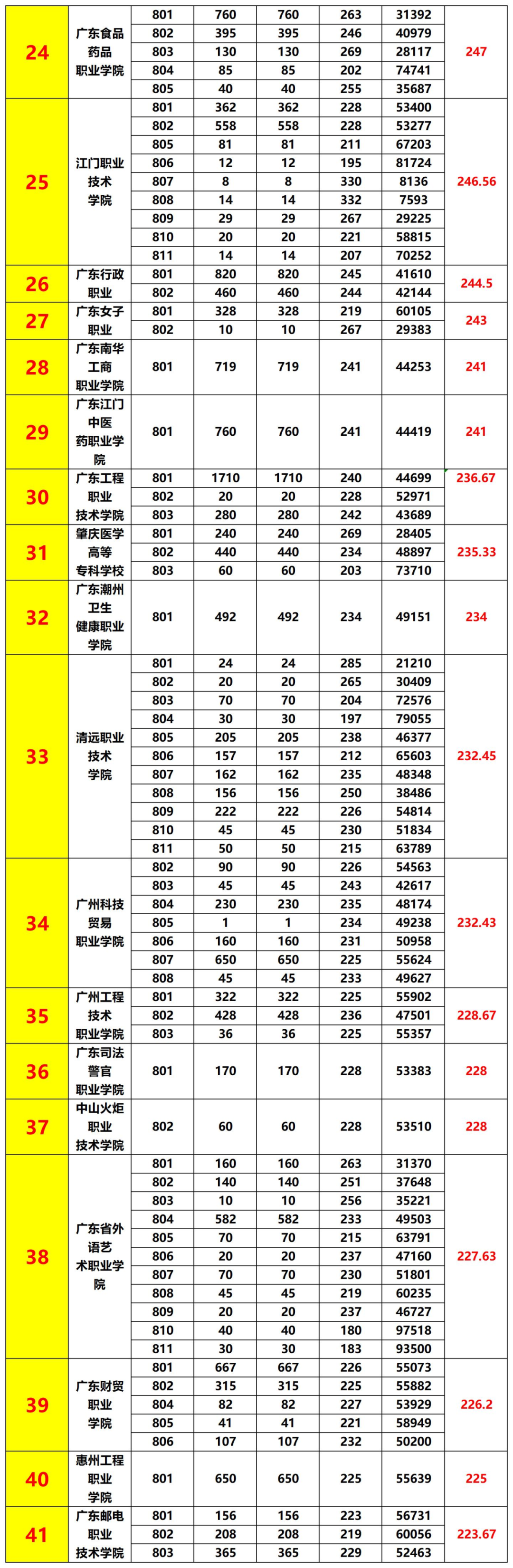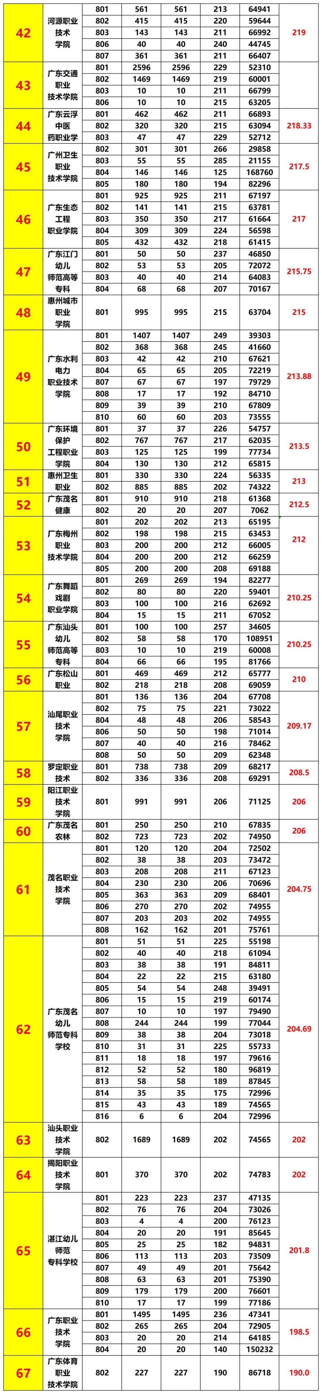 参考2024年广东“3+证书”考试各院校招生录取分数线,公办院校汇总。最高384分,最低190分。