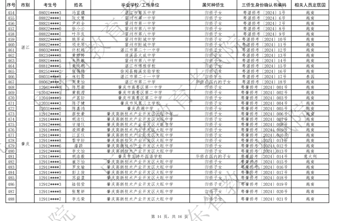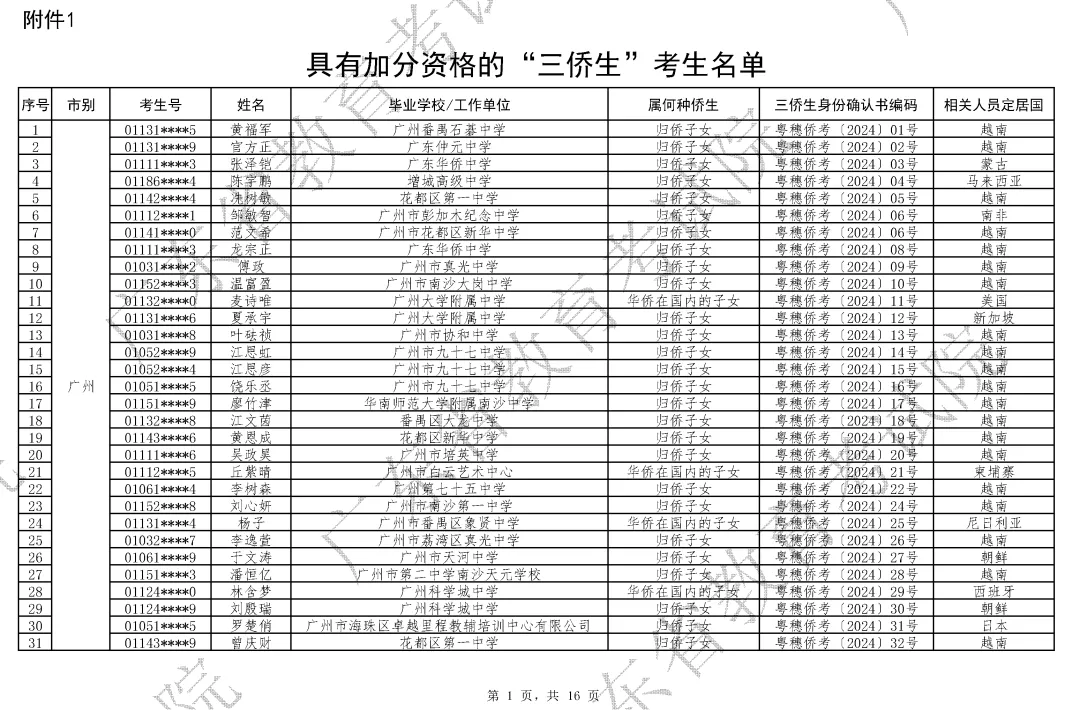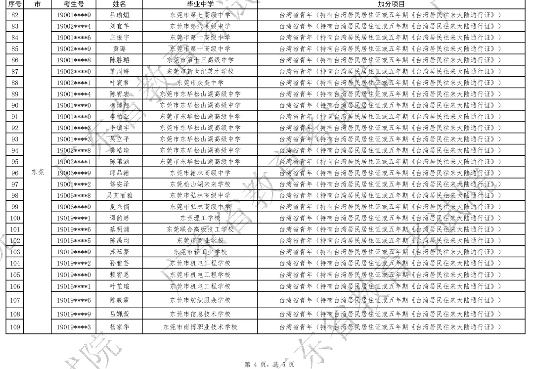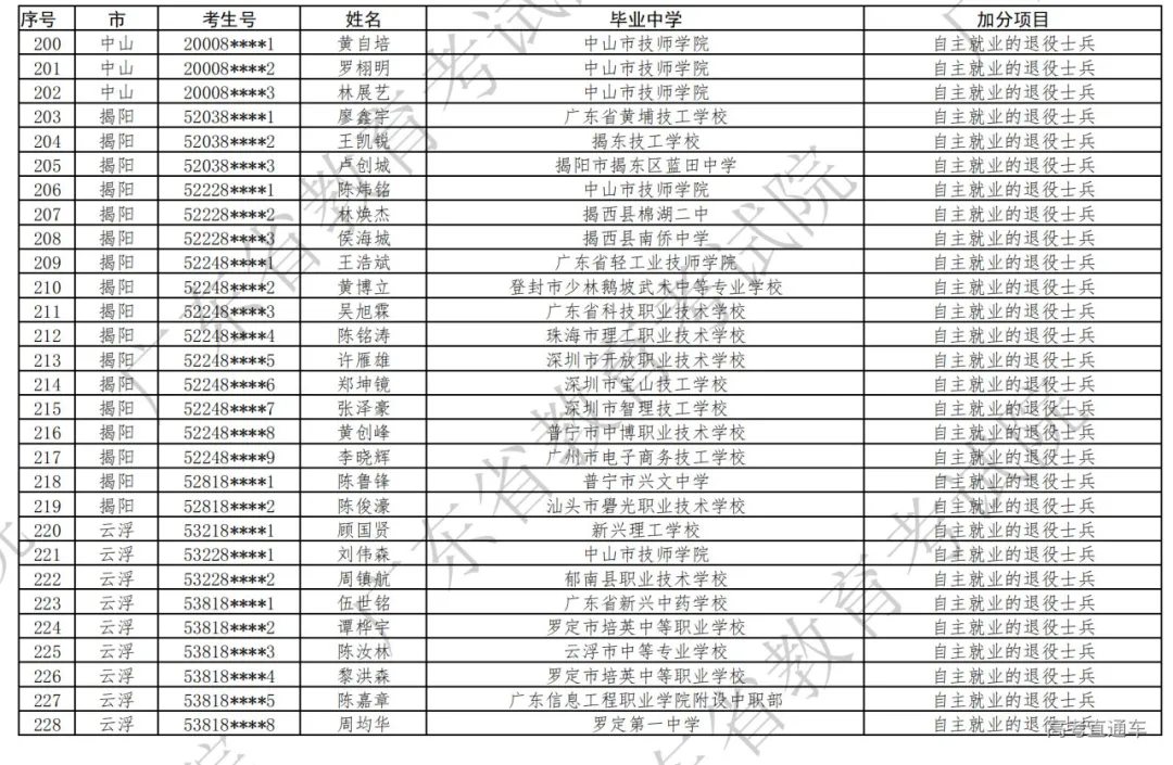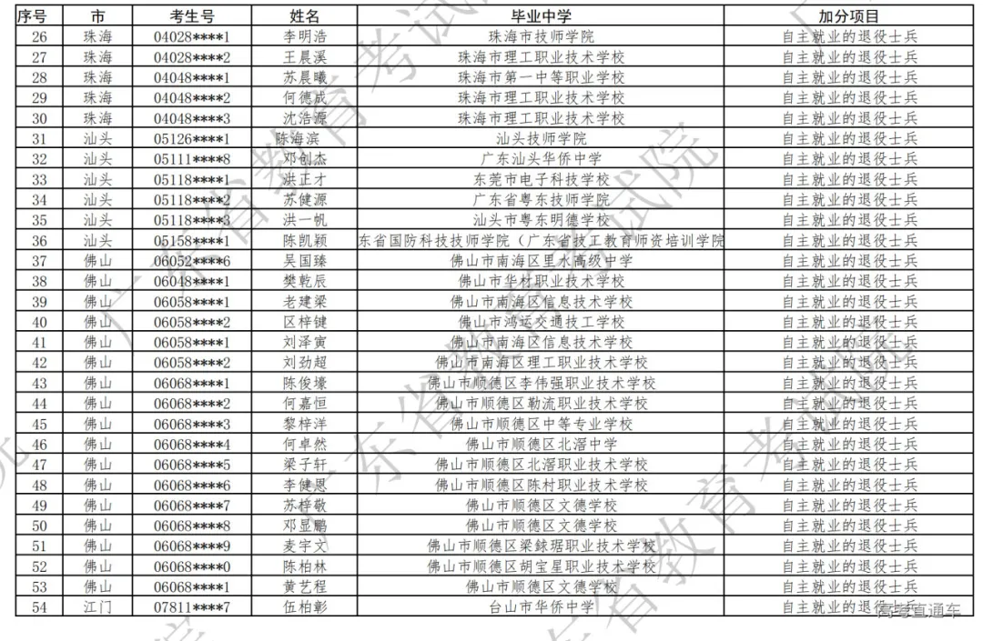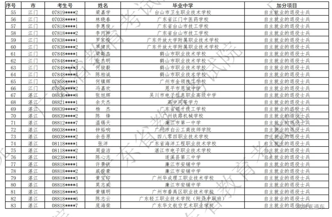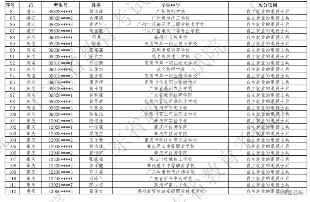 根据《广东省招生委员会关于进一步调整广东省高考加分项目和加强管理工作的通知》(粤招〔2015〕6号)及广东省2025年普通高考报名有关规定,经考生申请、有关部门审核、省招办汇总确认,现将广东省2025年普通高校招生具有加分资格的考生名单(详见附件1-5)发给你们,并就有关事项通知如下: