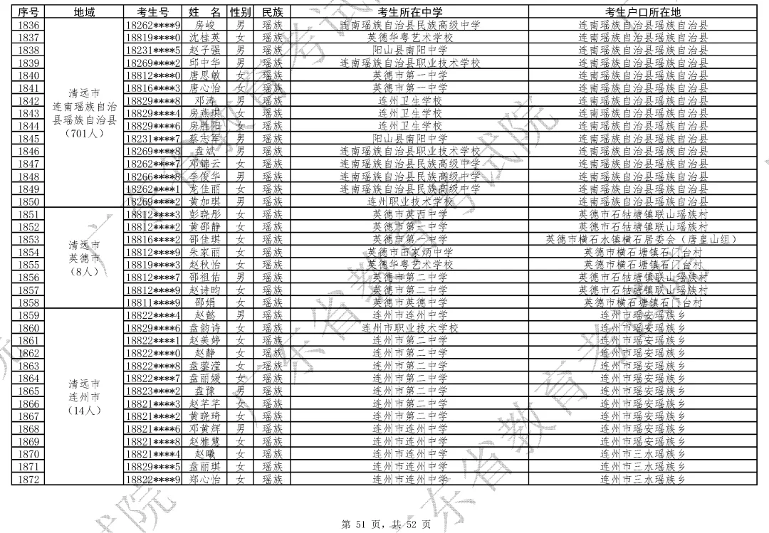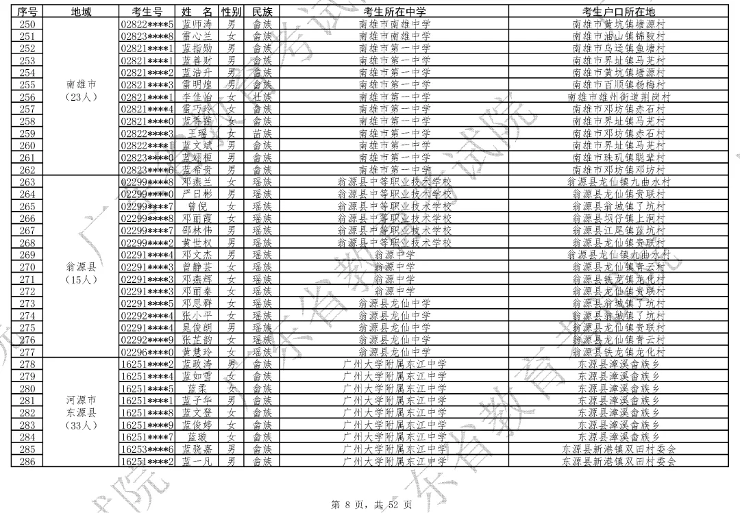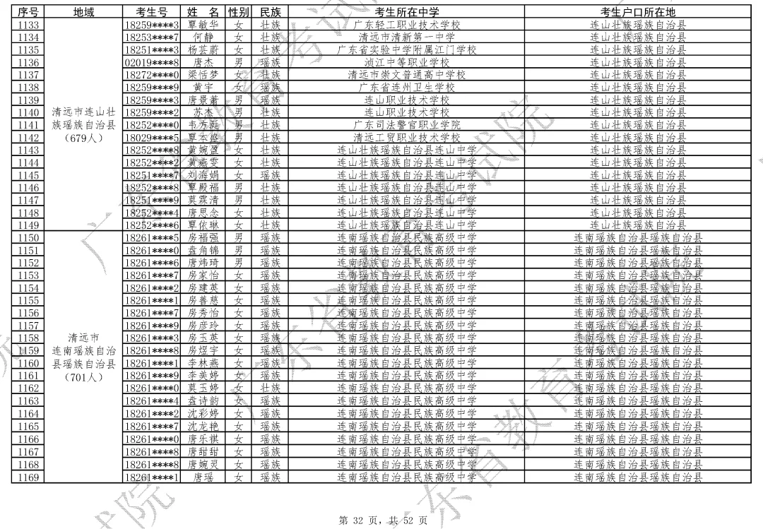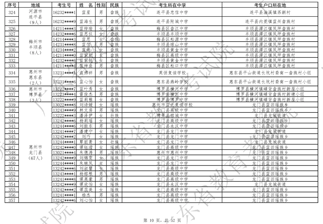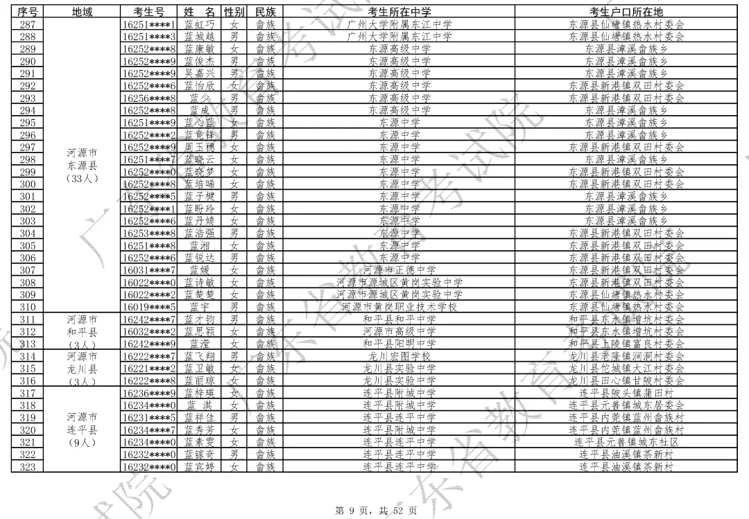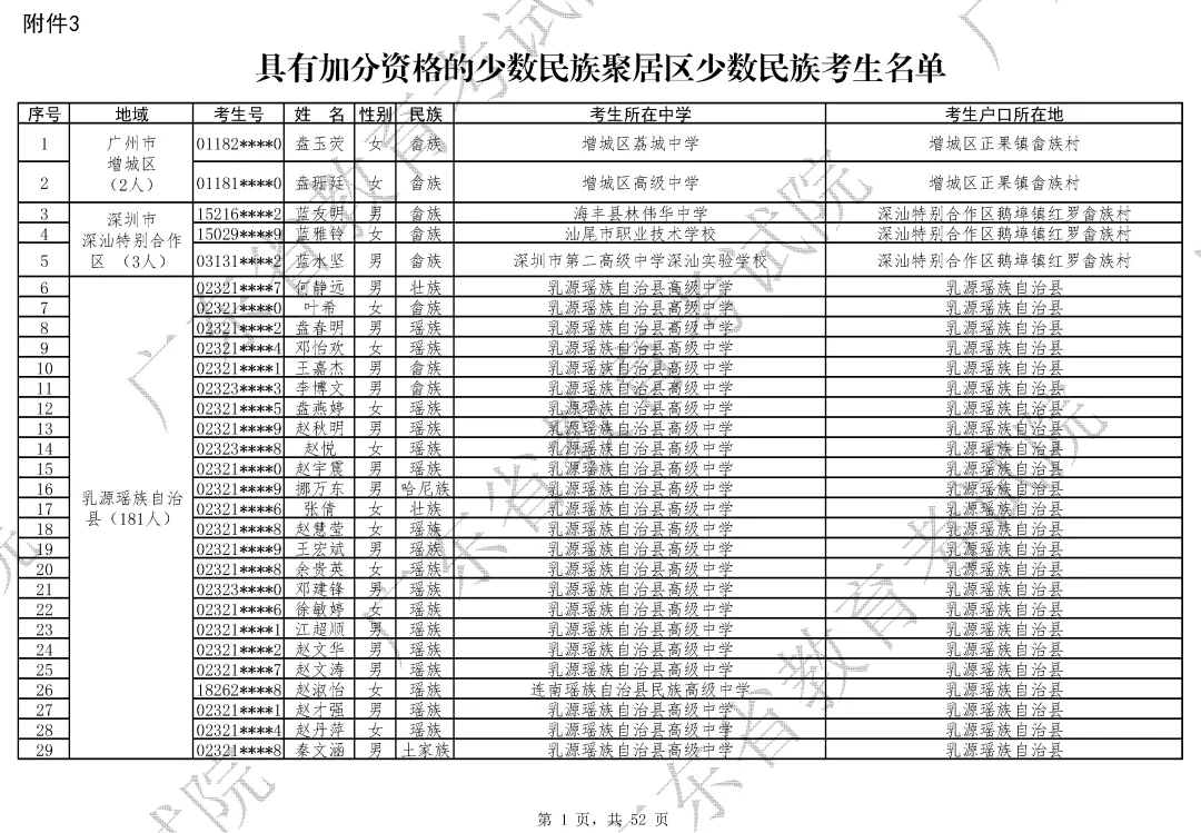 3.具有加分资格的广东省少数民族聚居区少数民族考生名单