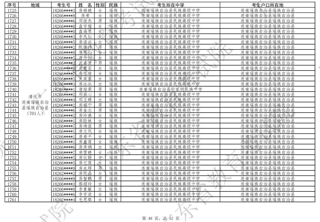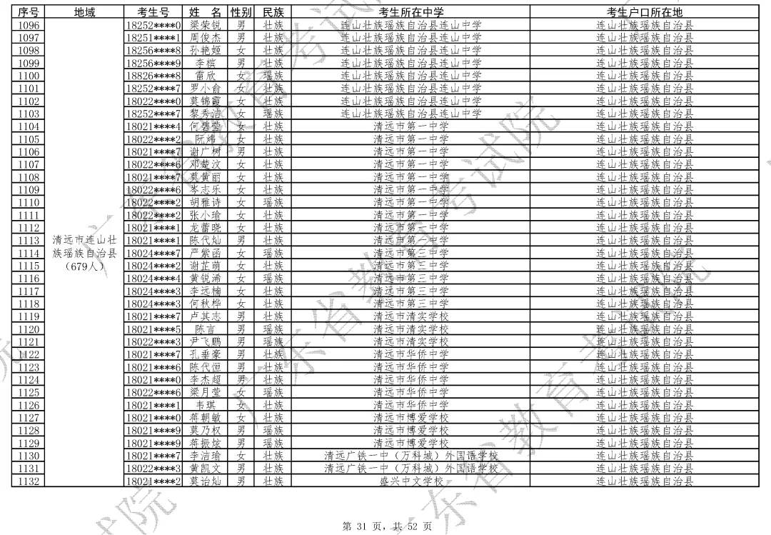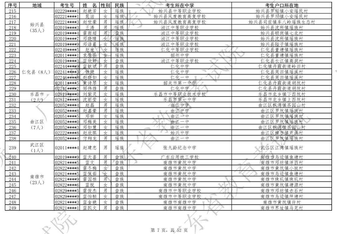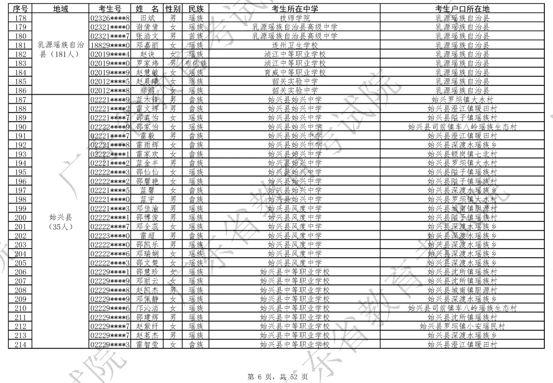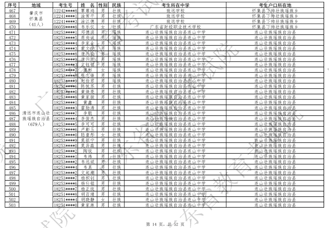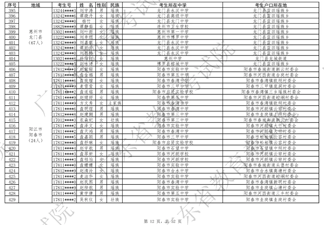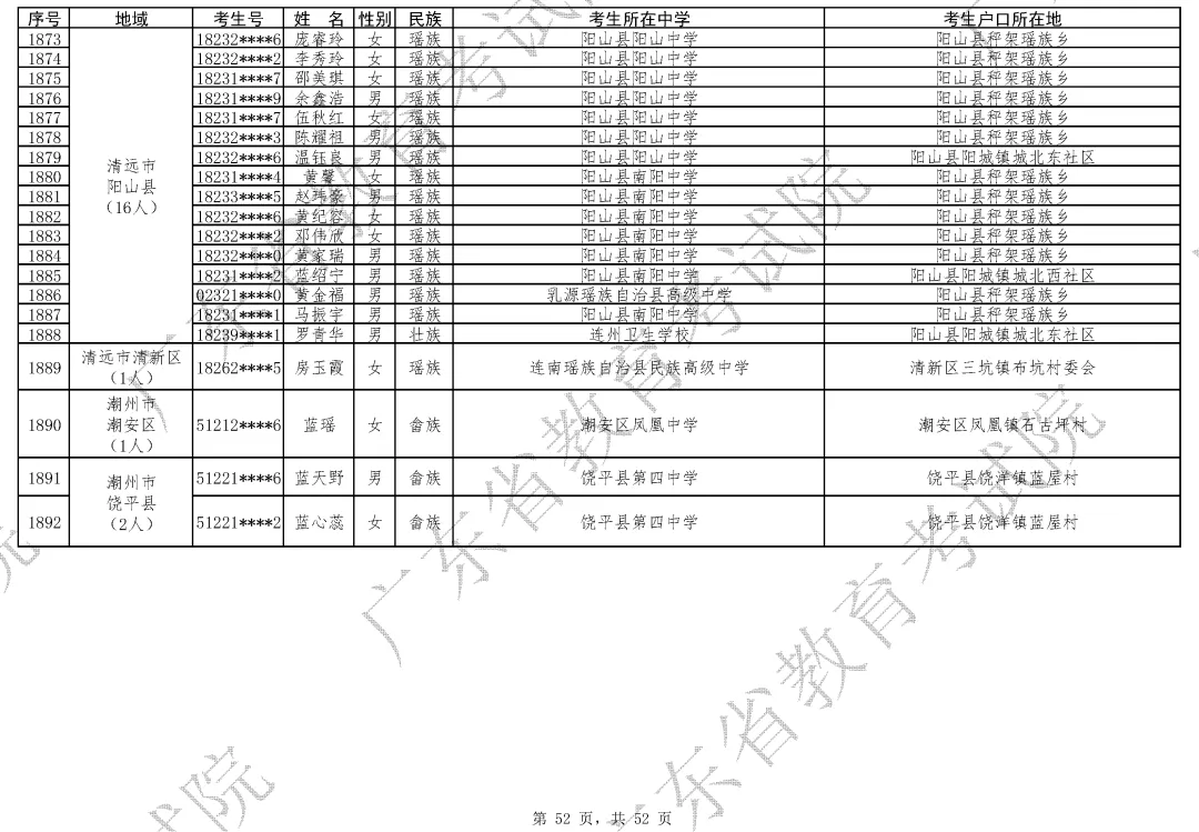 3.具有加分资格的广东省少数民族聚居区少数民族考生名单