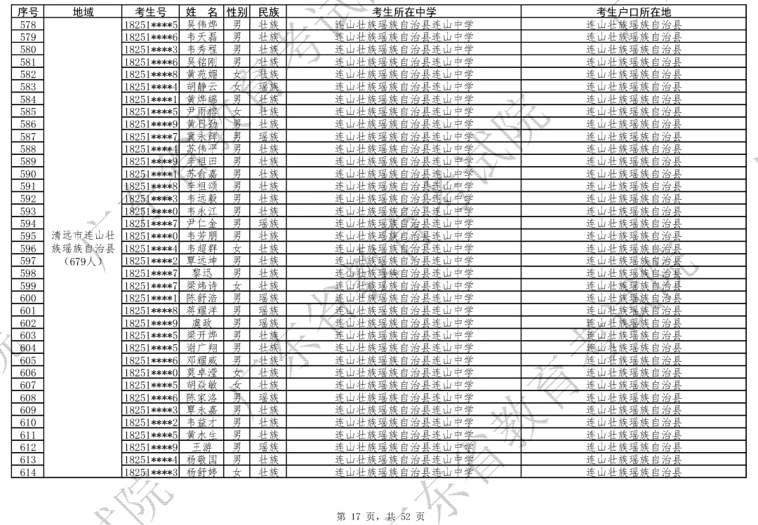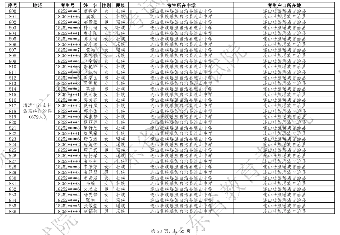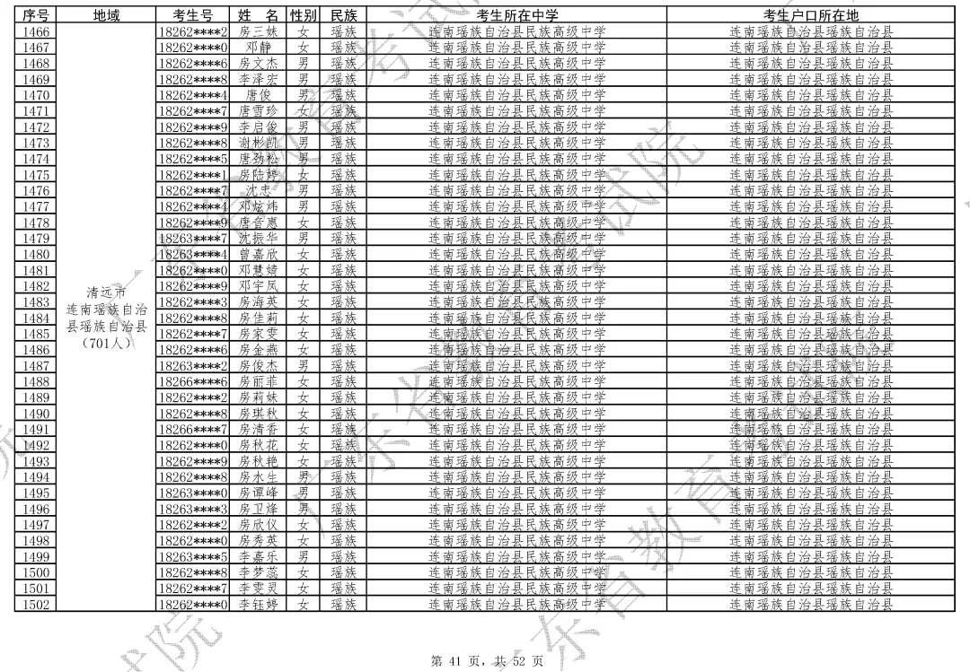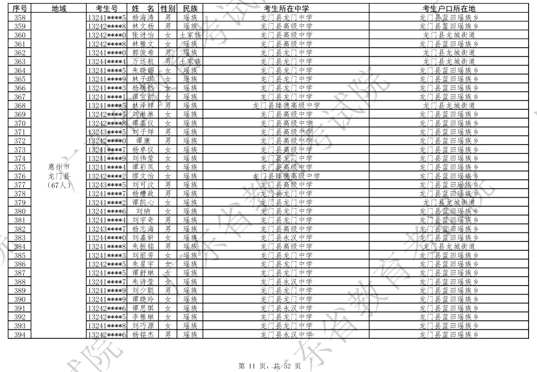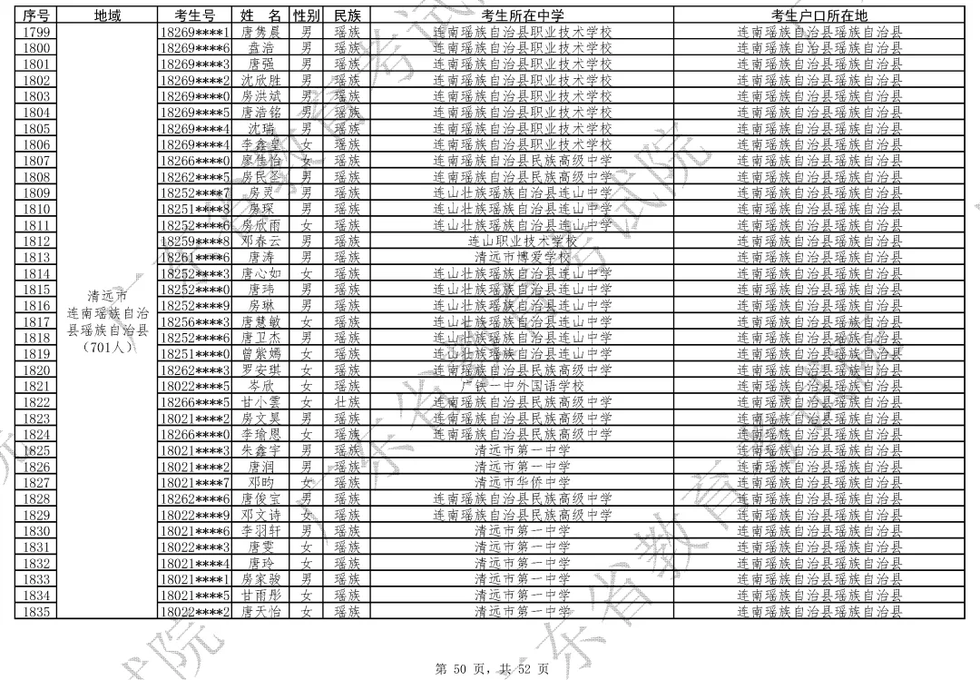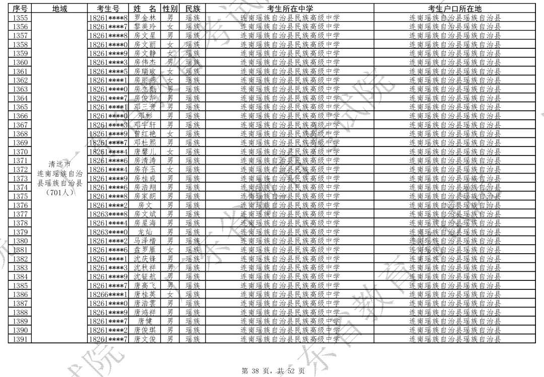 3.具有加分资格的广东省少数民族聚居区少数民族考生名单