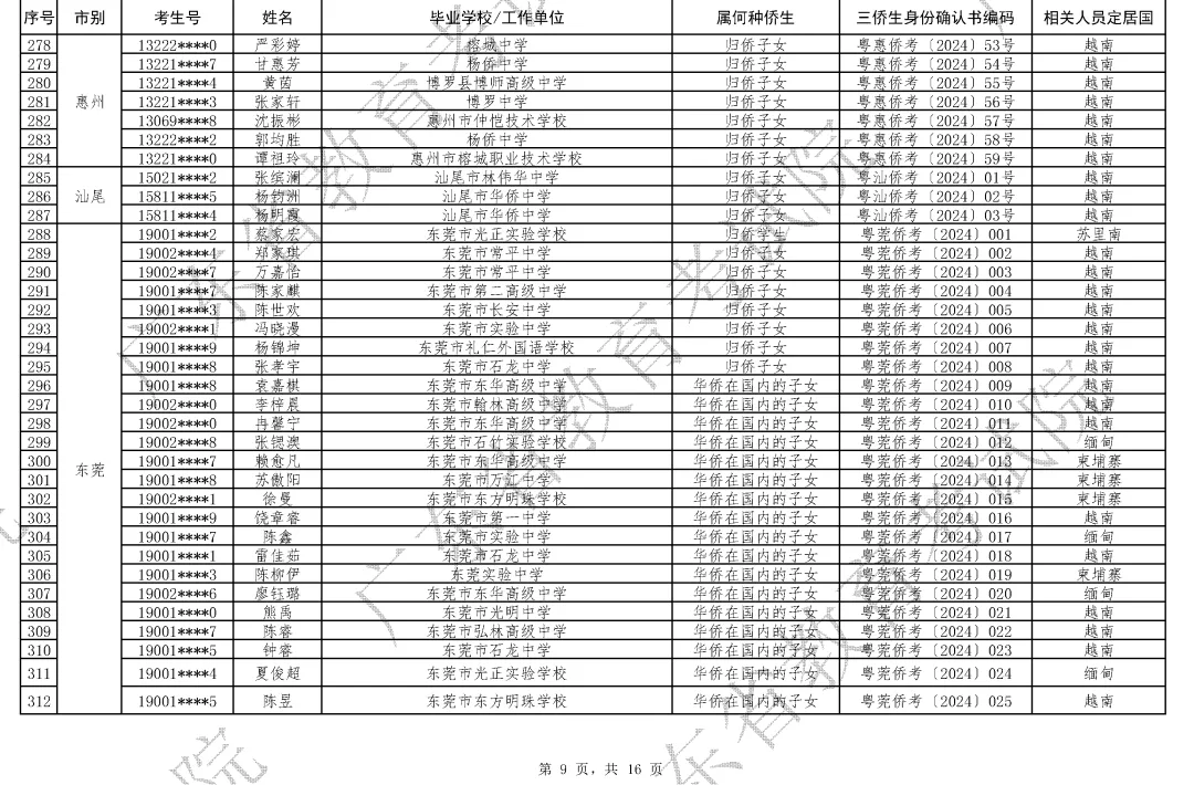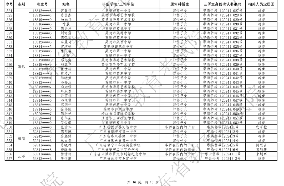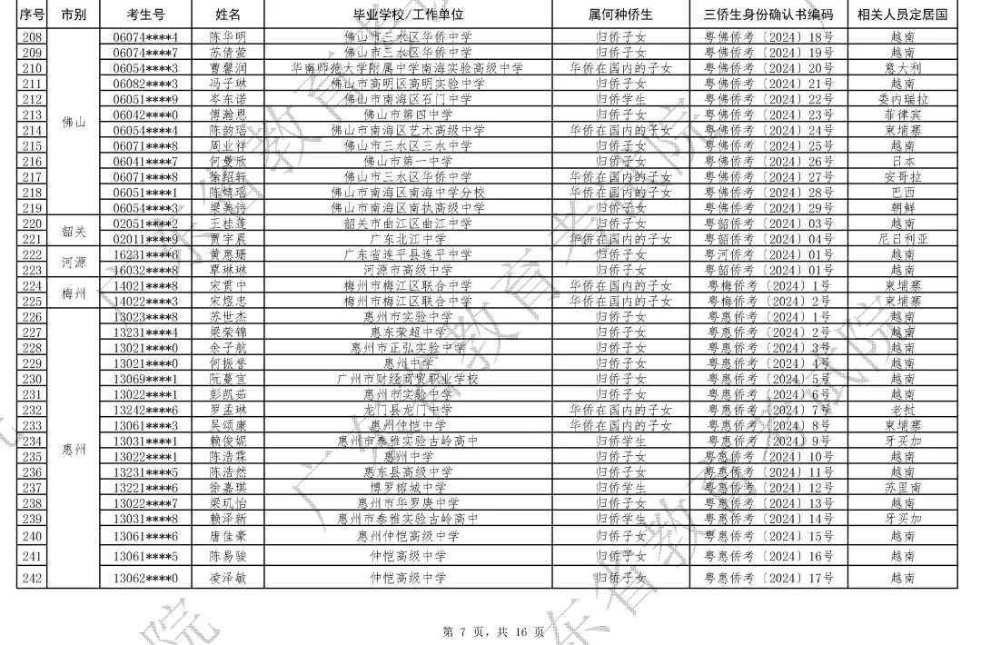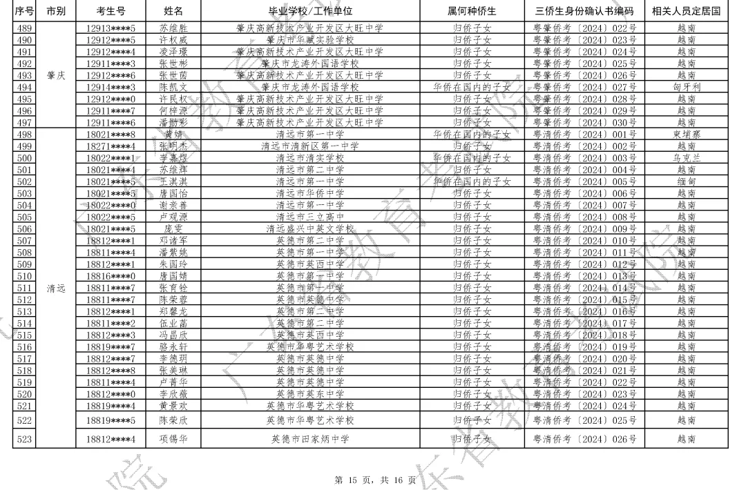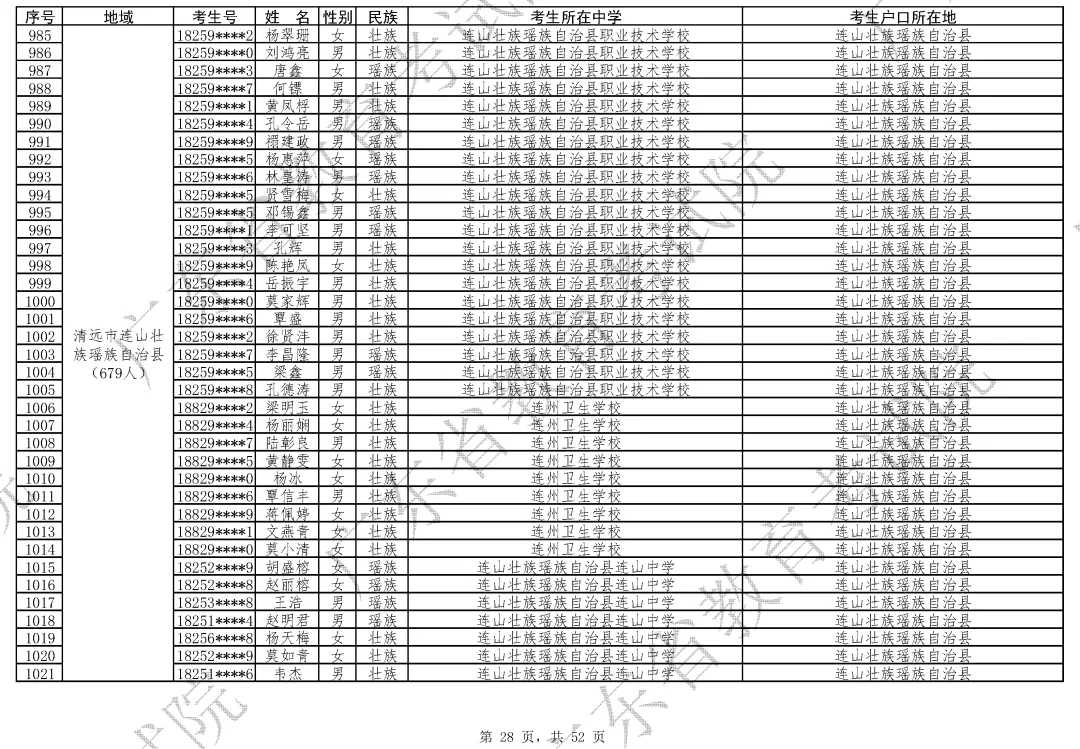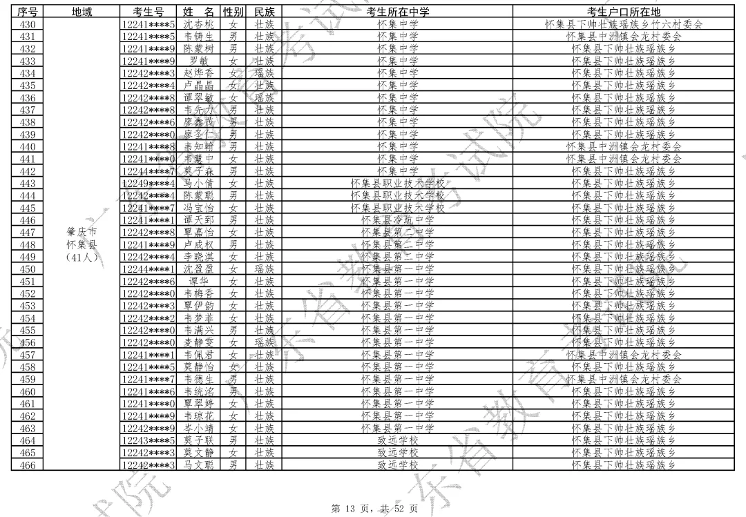 3.具有加分资格的广东省少数民族聚居区少数民族考生名单