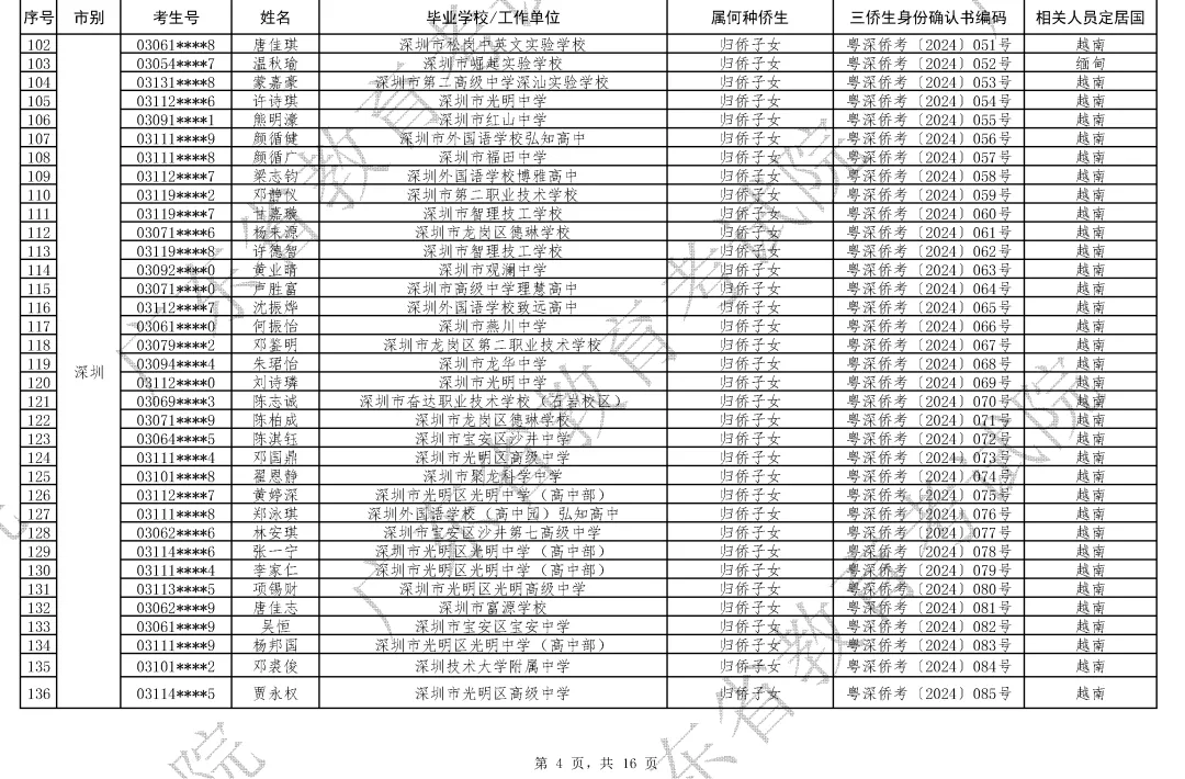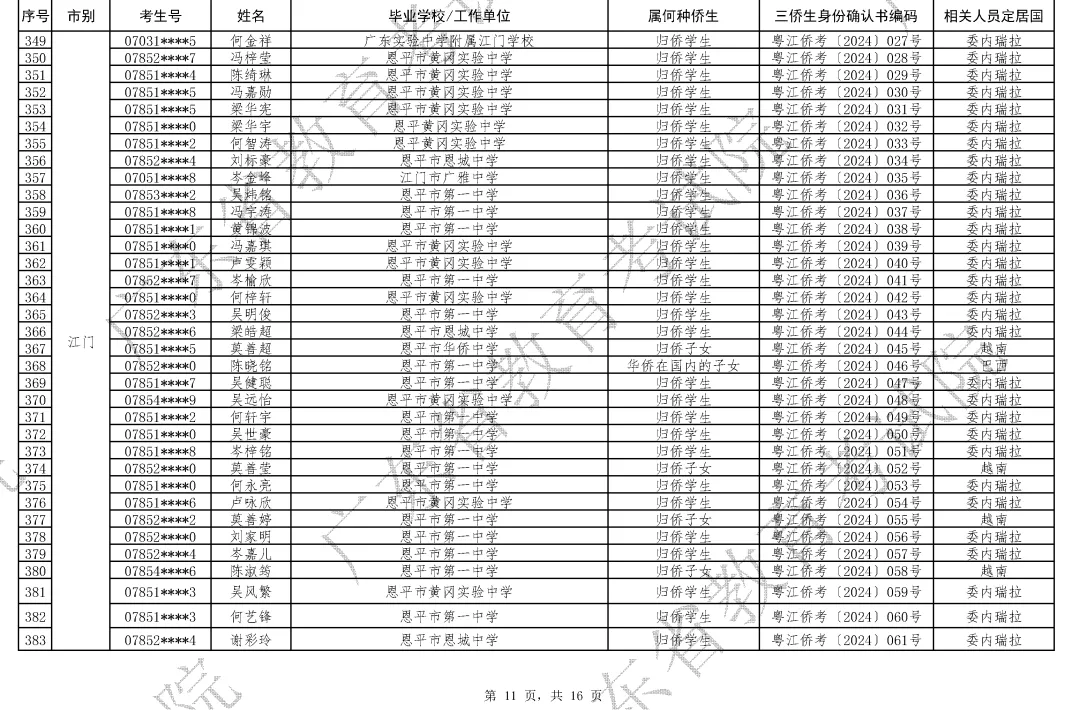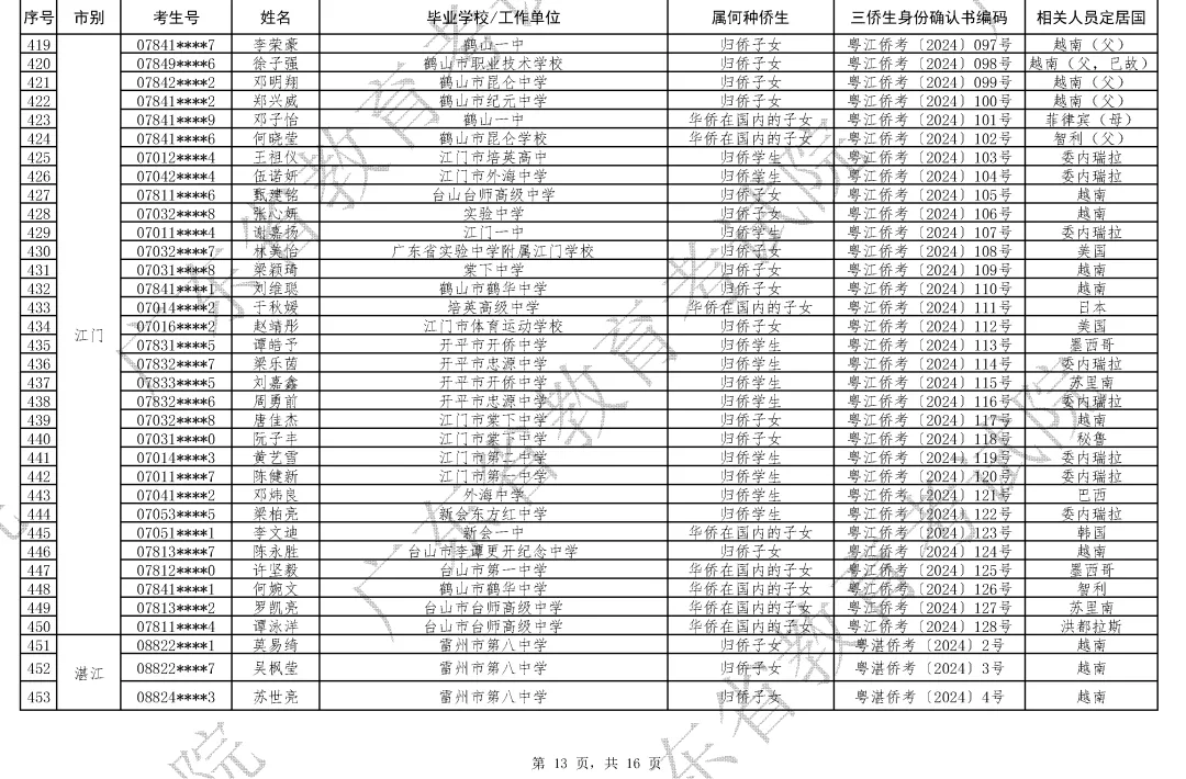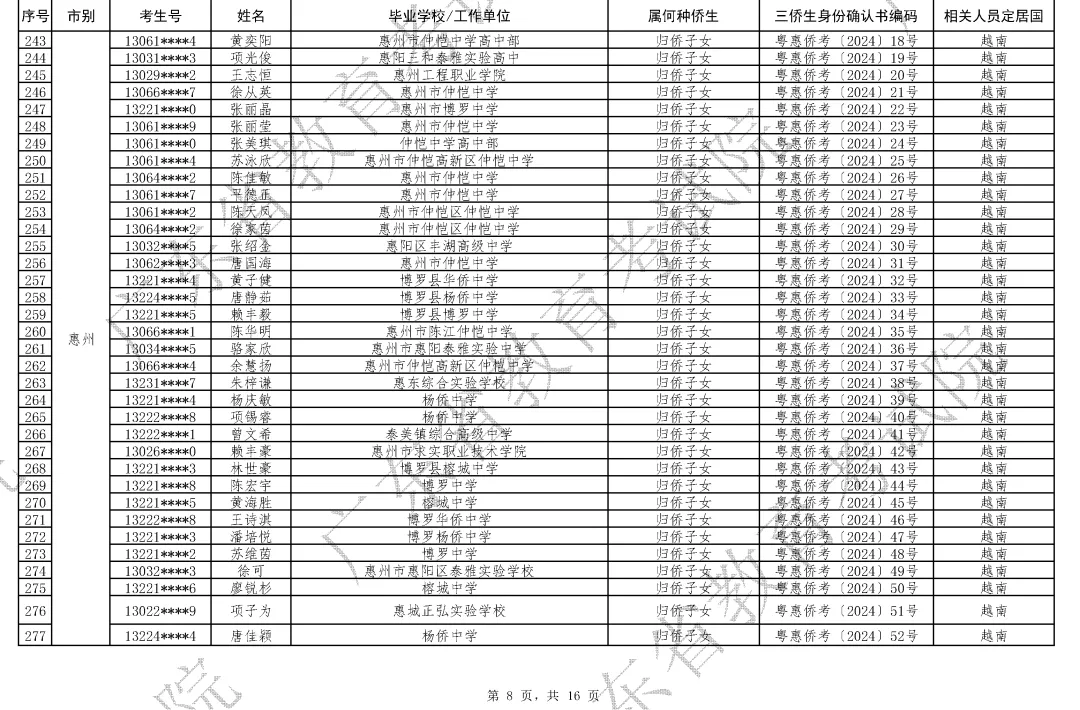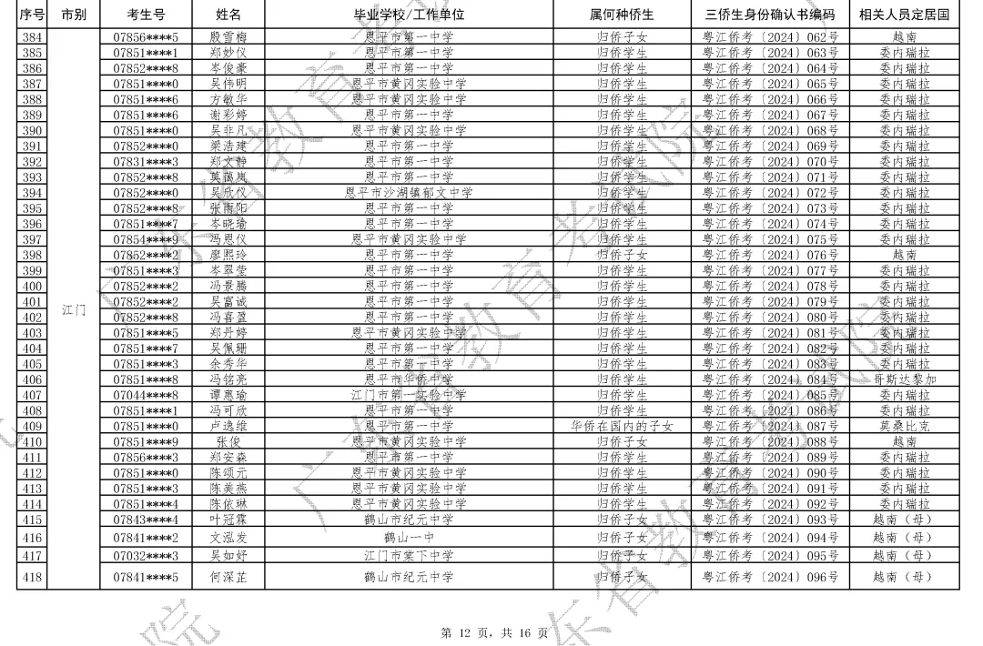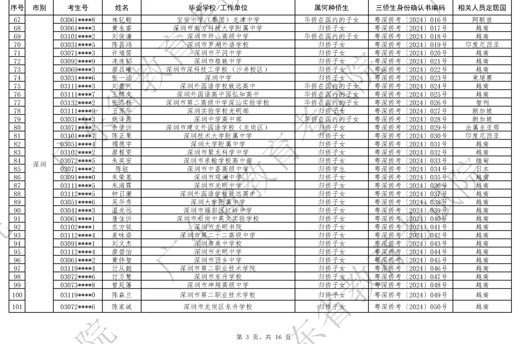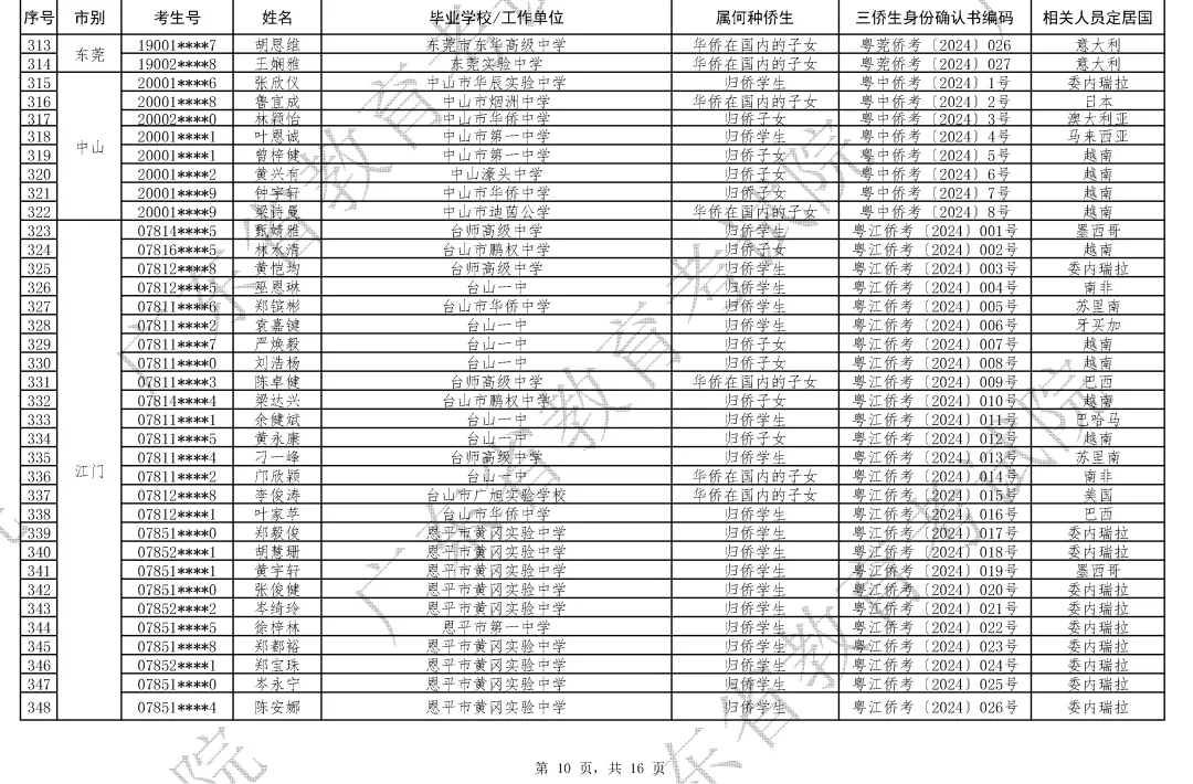 3.具有加分资格的广东省少数民族聚居区少数民族考生名单