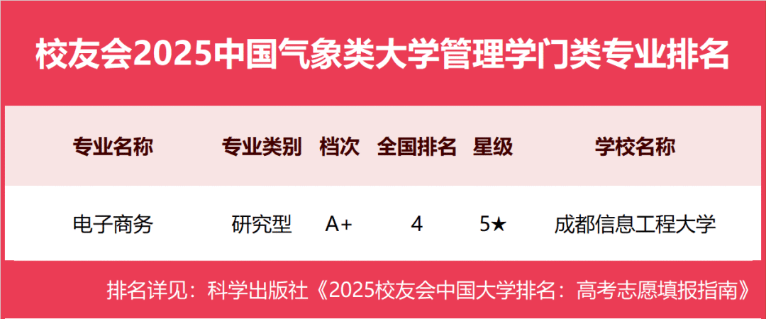 对于2025年即将报考大学的考生来说,选择一个适合自己且有发展前景的专业至关重要。近日,全国第三方大学评价研究机构艾瑞深校友会网(Cuaa.net)公布了校友会2025中国气象类大学一流专业排名,为有意向报考气象类专业的考生提供了权威的参考。