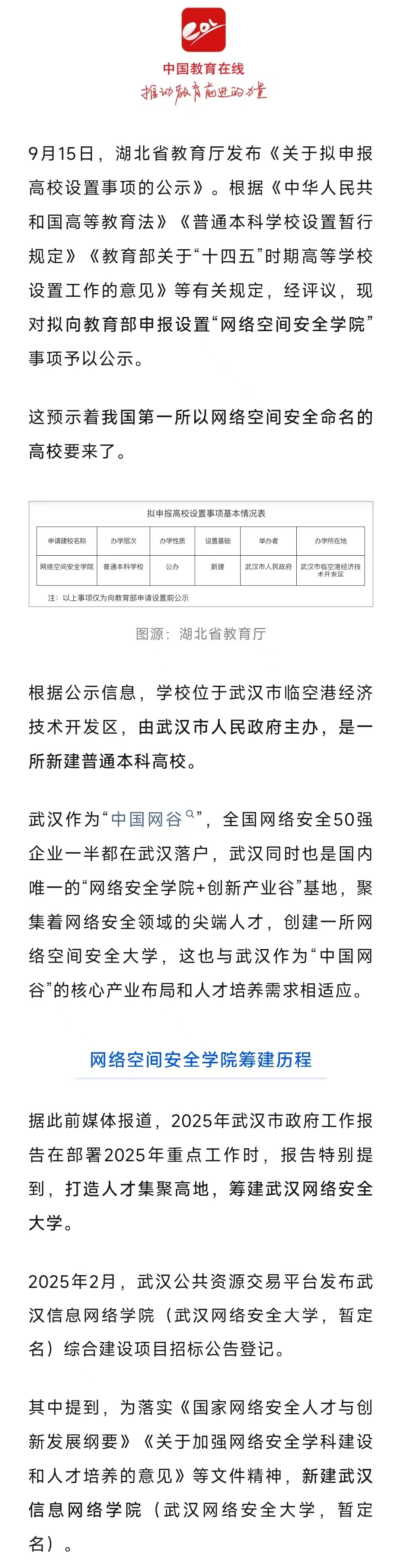 几乎是同一时间,武汉传来消息:“武汉网络安全大学”正在申请筹建!主打反诈骗、反黑客、反病毒、反网络攻击……目标是培养**“网络卫士”,专门对付电信诈骗、勒索病毒、数据泄露**!