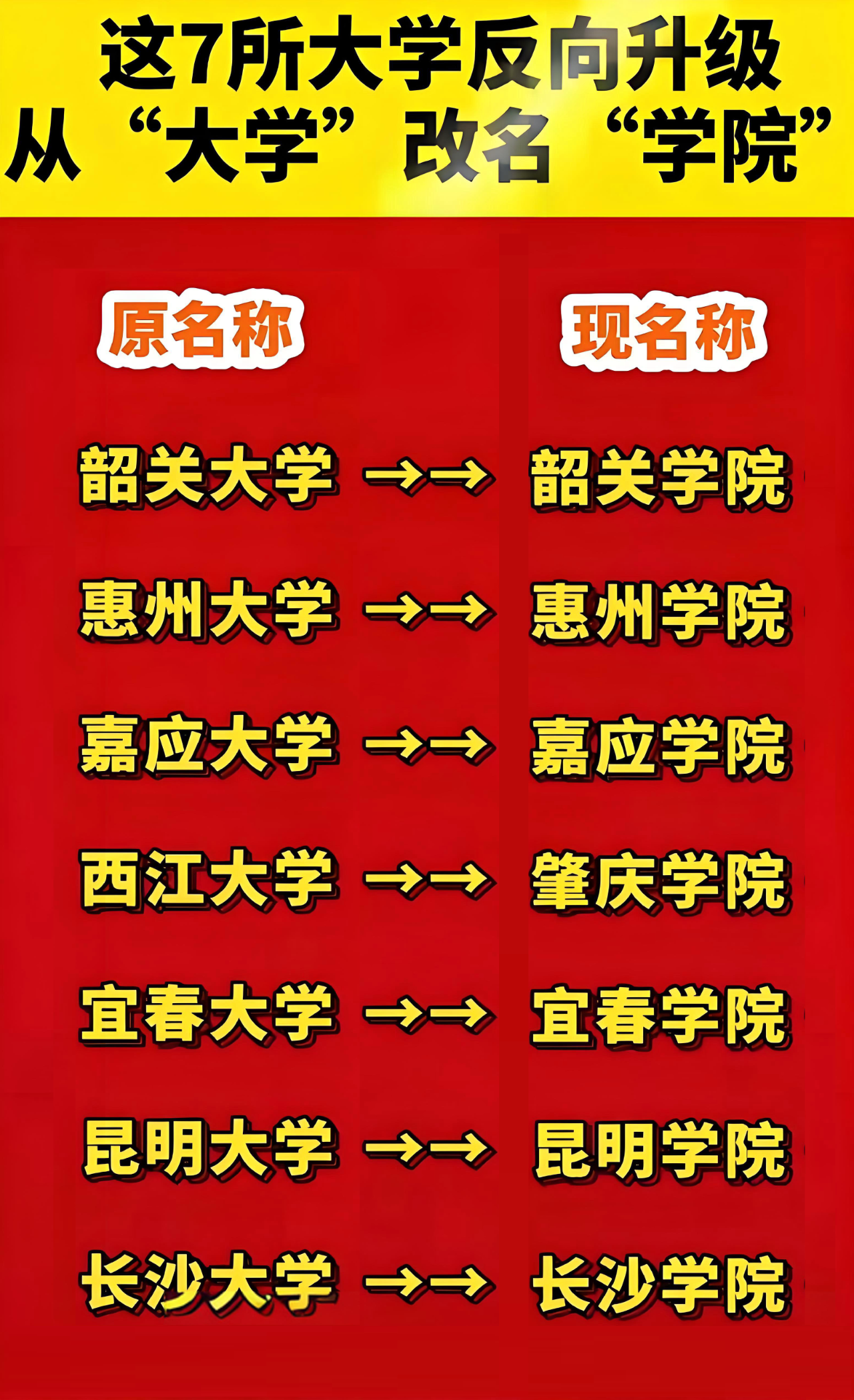 在 “学院改大学” 成主流的教育赛道上,有 7 所高校却走出了反向路线 —— 从 “大学” 更名为 “学院”。曾引发全网不解:是实力倒退还是另有隐情?如今多年过去,它们的发展是否 “打脸” 质疑?对 2025 届高考生来说,这些藏在 “学院” 校名后的实力派,或许藏着报考惊喜。